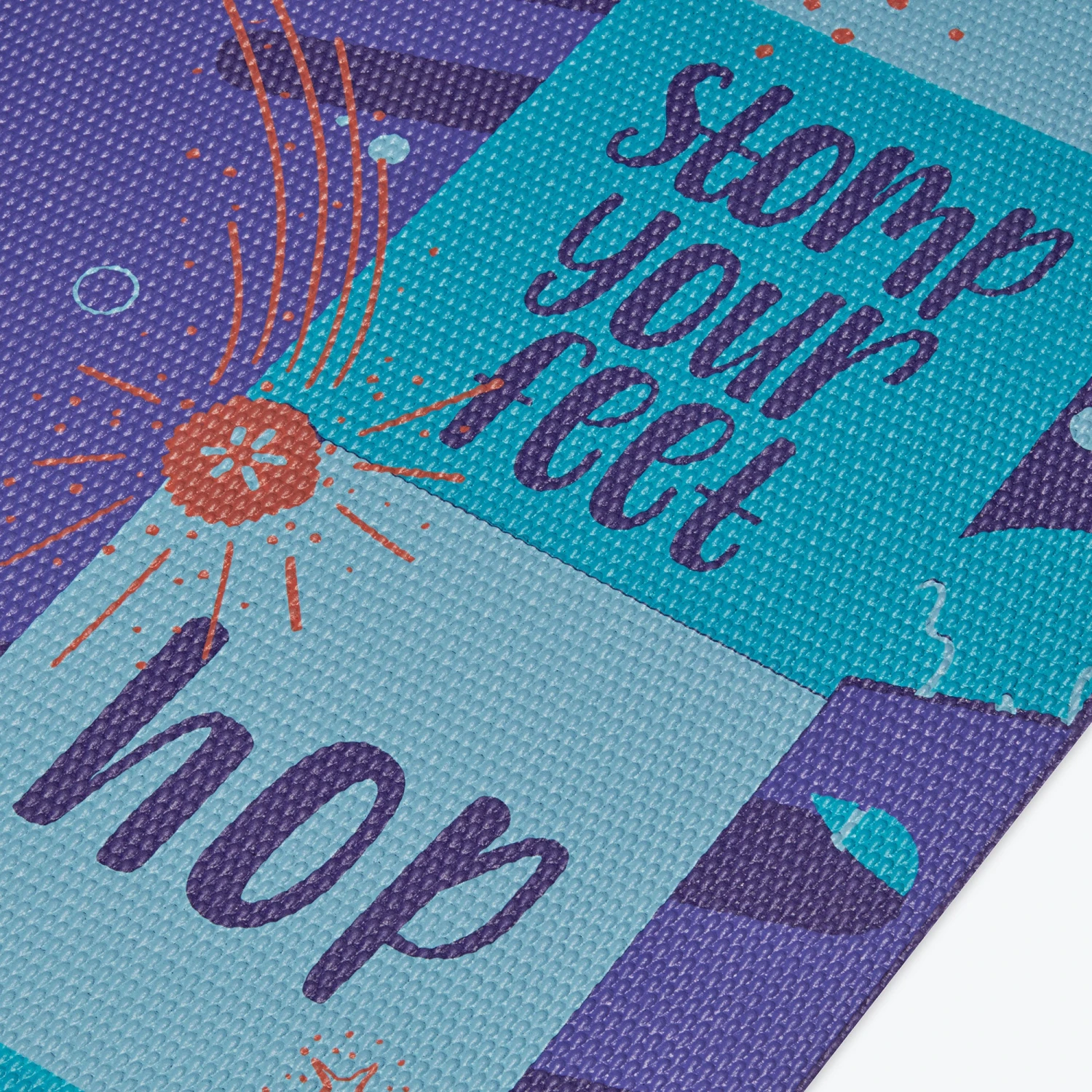 The Kidnasium Wiggly Workout Yoga Mat is movement-inspired to help keep your little ones active and their minds engaged! Spin the wheel and hop, skip or jump to the next activity. Each square features a fun and active move – spin, clap, cheer and so much more. Sized especially for kids aged 5-8, this 3mm-thick mat is lightweight for easy portability. Made of latex-free PVC.
