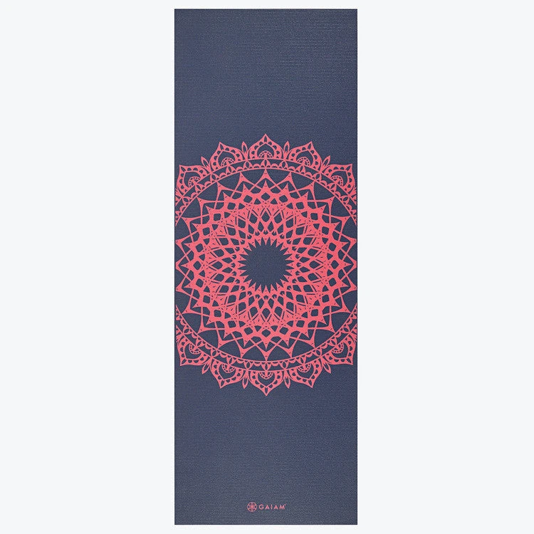 Find your center on this Navy Fleur Marrakesh Yoga Mat. This 4mm thick mat will help keep you and your joints comfortable during any pose while the no slip grip will keep you in place. Made without the six most harmful phthalates and latex free.