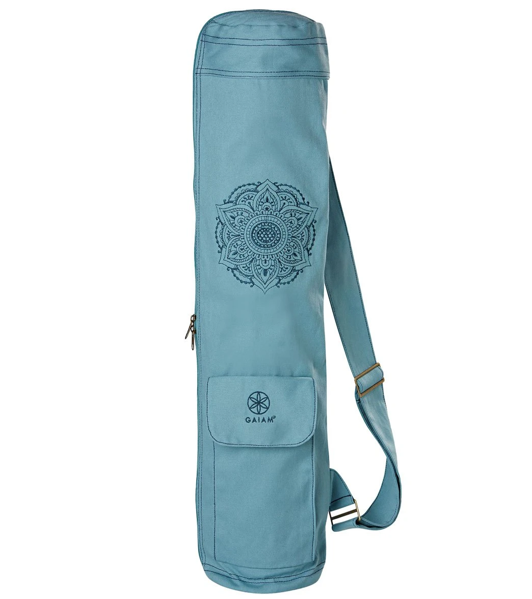 The Gaiam Niagra Embroidered Cargo Yoga Mat Bags accommodate just about any mat and include a roomy expandable pocket to hold everything else.
