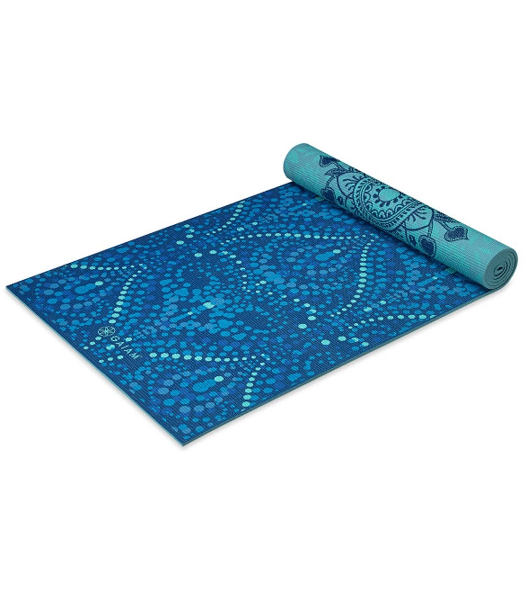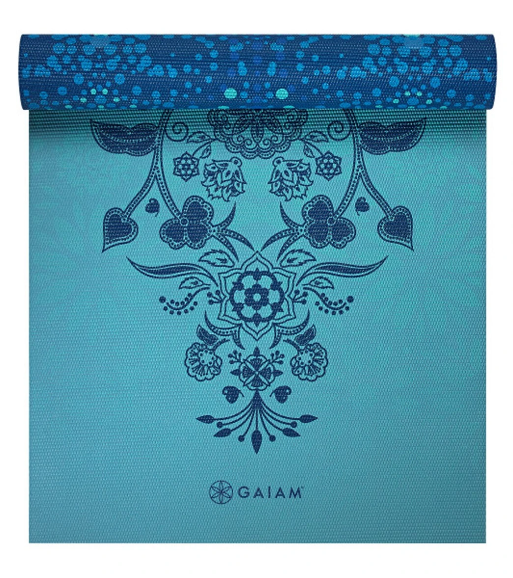 Twice the mat means more opportunities to practice vinyasa. This Gaiam Premium Reversible Yoga Mat 5mm comes in a calming bohemium take on classic patterns o you can pick and choose what type of practice you want for the day. Made with 5mm of premium cushioning, this yoga mat comes in a textured, no-slip design so you can stay supported throughout class.