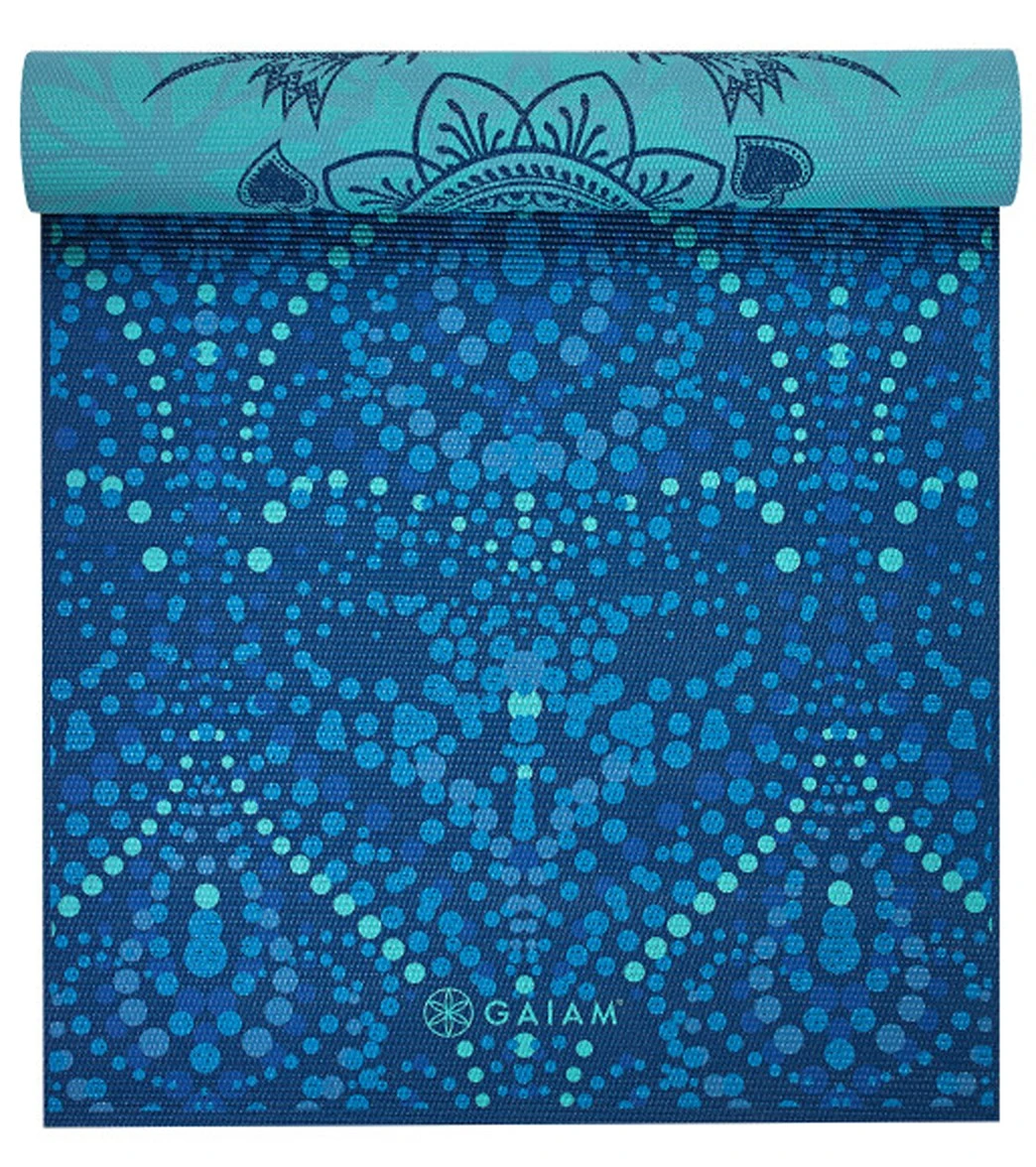 Twice the mat means more opportunities to practice vinyasa. This Gaiam Premium Reversible Yoga Mat 5mm comes in a calming bohemium take on classic patterns o you can pick and choose what type of practice you want for the day. Made with 5mm of premium cushioning, this yoga mat comes in a textured, no-slip design so you can stay supported throughout class.