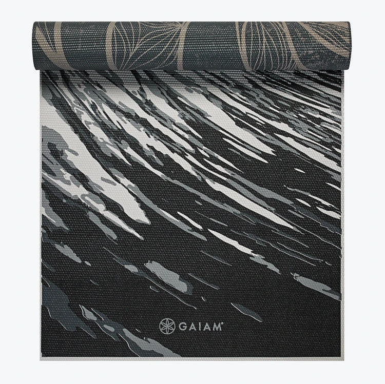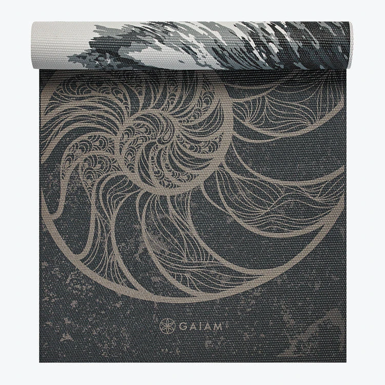 Mix-it-up with this Reversible Spiral Motion Yoga Mat that features a wave print on one side and a historic fossil print on the other. The 6mm thickness provides extra-cushioning that will help protect your joint during any pose while the texture is made from no slip, grippy material, that keeps you in place.