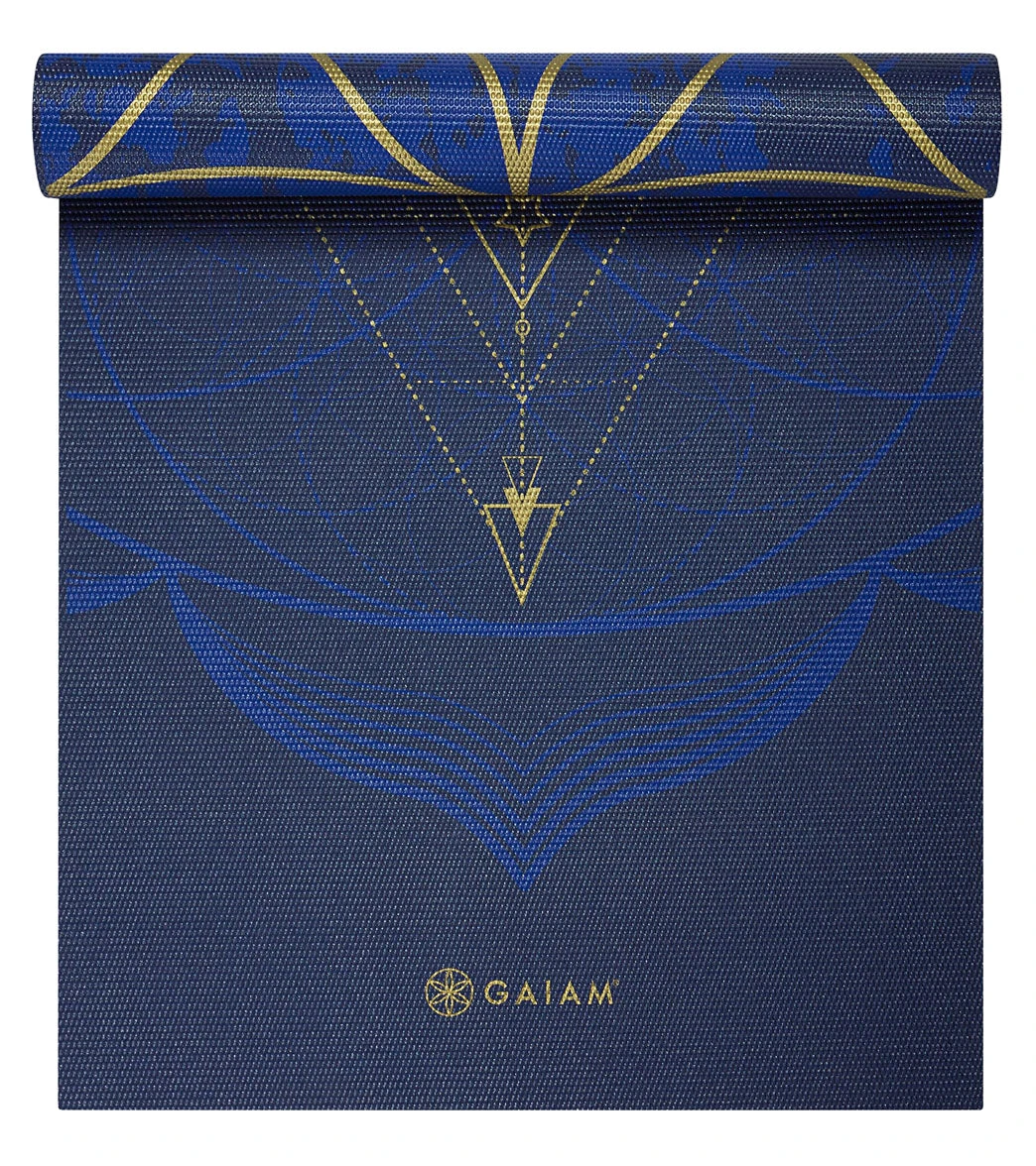 Unleash sacred inspiration while practicing on the Gaiam Solar Metallic Yoga Mat. It is reversible so you can practice on the design of your choice.